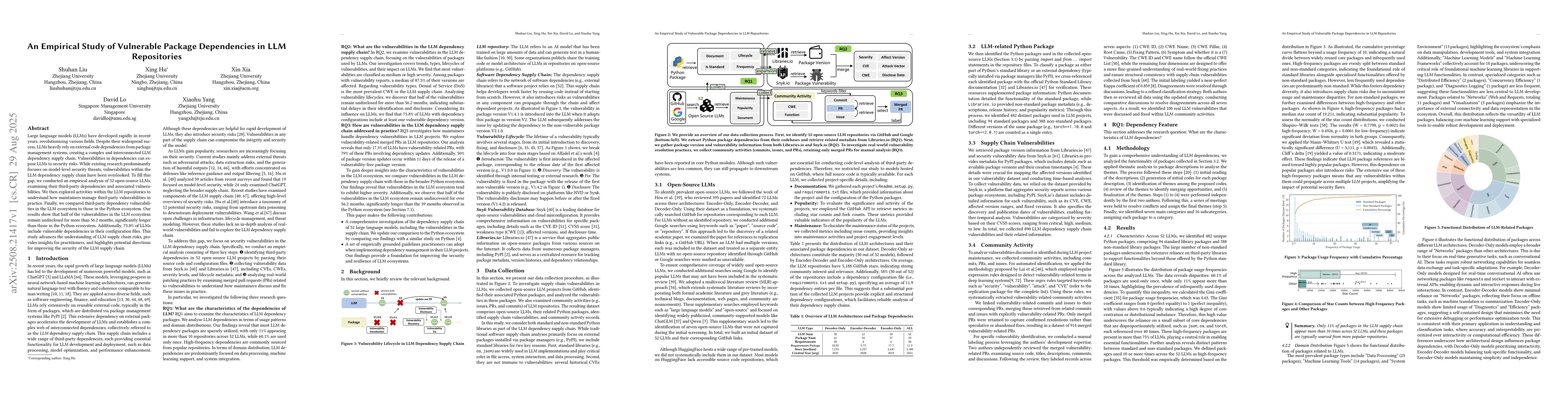 Large language models (LLMs) have developed rapidly in recent years, revolutionizing various fields. Despite their widespread success, LLMs heavily rely on external code dependencies from package management systems, creating a complex and interconnected LLM dependency supply chain. Vulnerabilities in dependencies can expose LLMs to security risks. While existing research predominantly focuses on model-level security threats, vulnerabilities within the LLM dependency supply chain have been overlooked. To fill this gap, we conducted an empirical analysis of 52 open-source LLMs, examining their third-party dependencies and associated vulnerabilities. We then explored activities within the LLM repositories to understand how maintainers manage third-party vulnerabilities in practice. Finally, we compared third-party dependency vulnerabilities in the LLM ecosystem to those in the Python ecosystem. Our results show that half of the vulnerabilities in the LLM ecosystem remain undisclosed for more than 56.2 months, significantly longer than those in the Python ecosystem. Additionally, 75.8% of LLMs include vulnerable dependencies in their configuration files. This study advances the understanding of LLM supply chain risks, provides insights for practitioners, and highlights potential directions for improving the security of the LLM supply chain.