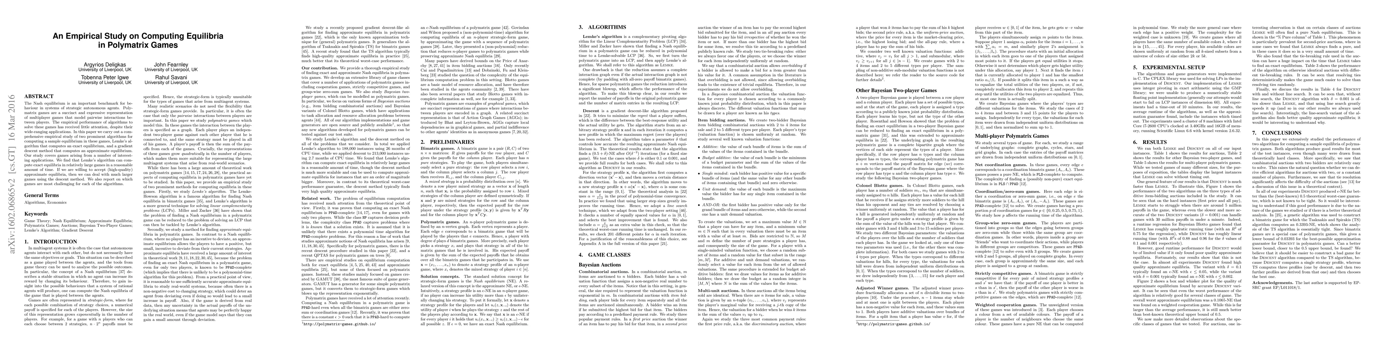 This paper conducts an empirical study comparing Lemke's algorithm and a gradient descent method for computing equilibria in polymatrix games. Lemke's algorithm efficiently finds exact equilibria in larger games, while the gradient descent method offers high-quality approximate equilibria for even larger, more complex games.
