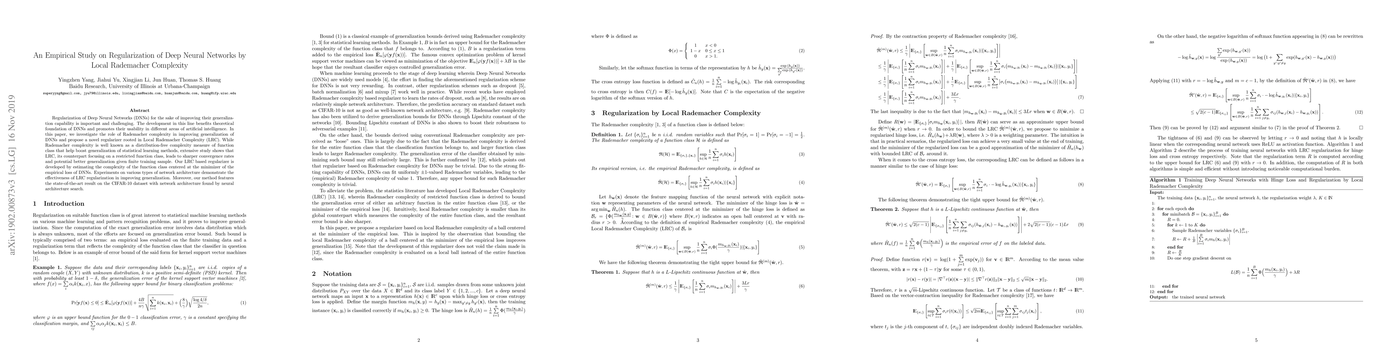 This paper explores the use of Local Rademacher Complexity (LRC) as a regularizer for Deep Neural Networks (DNNs) to enhance their generalization capability. The proposed LRC-based regularizer estimates the complexity of the function class centered at the empirical loss minimizer, leading to improved generalization performance, as demonstrated by state-of-the-art results on the CIFAR-10 dataset.