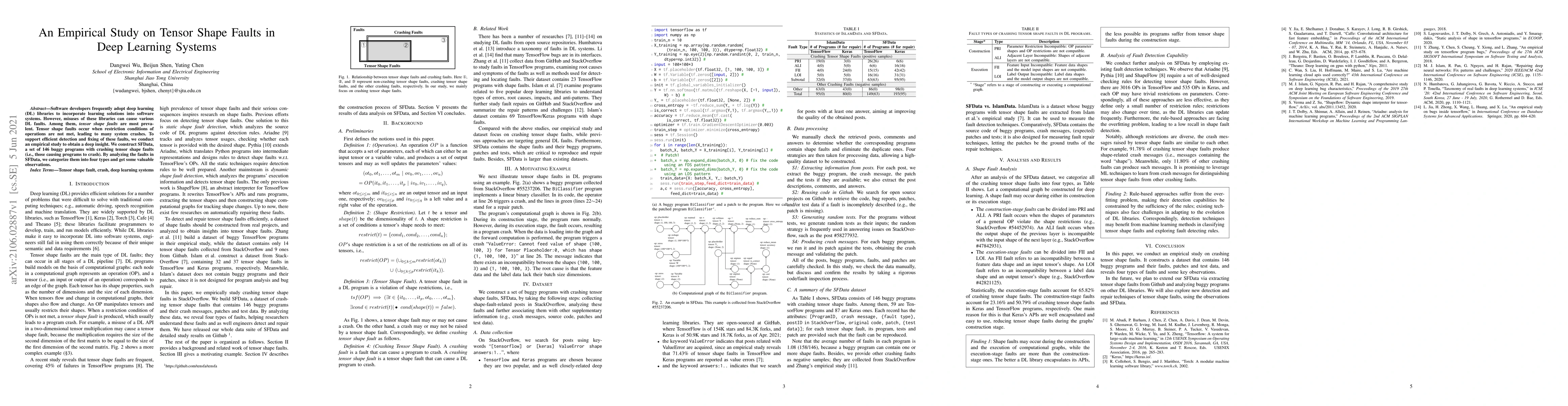 This paper investigates tensor shape faults in deep learning systems, constructing SFData with 146 buggy programs to analyze and categorize these faults into four types. The study aims to provide insights for efficient detection and resolution of these prevalent faults.
