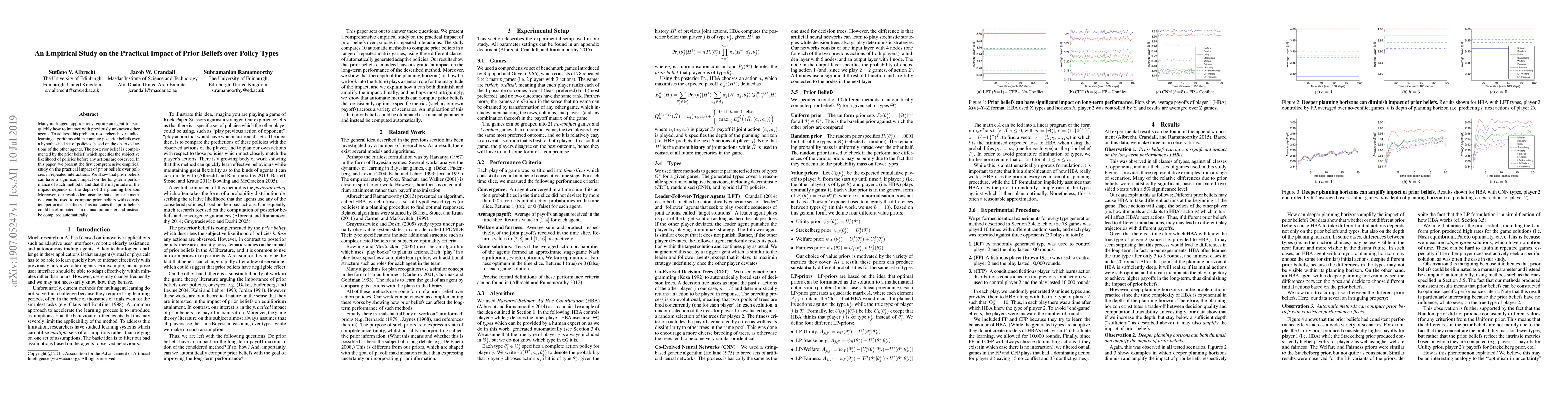 Many multiagent applications require an agent to learn quickly how to interact with previously unknown other agents. To address this problem, researchers have studied learning algorithms which compute posterior beliefs over a hypothesised set of policies, based on the observed actions of the other agents. The posterior belief is complemented by the prior belief, which specifies the subjective likelihood of policies before any actions are observed. In this paper, we present the first comprehensive empirical study on the practical impact of prior beliefs over policies in repeated interactions. We show that prior beliefs can have a significant impact on the long-term performance of such methods, and that the magnitude of the impact depends on the depth of the planning horizon. Moreover, our results demonstrate that automatic methods can be used to compute prior beliefs with consistent performance effects. This indicates that prior beliefs could be eliminated as a manual parameter and instead be computed automatically.
