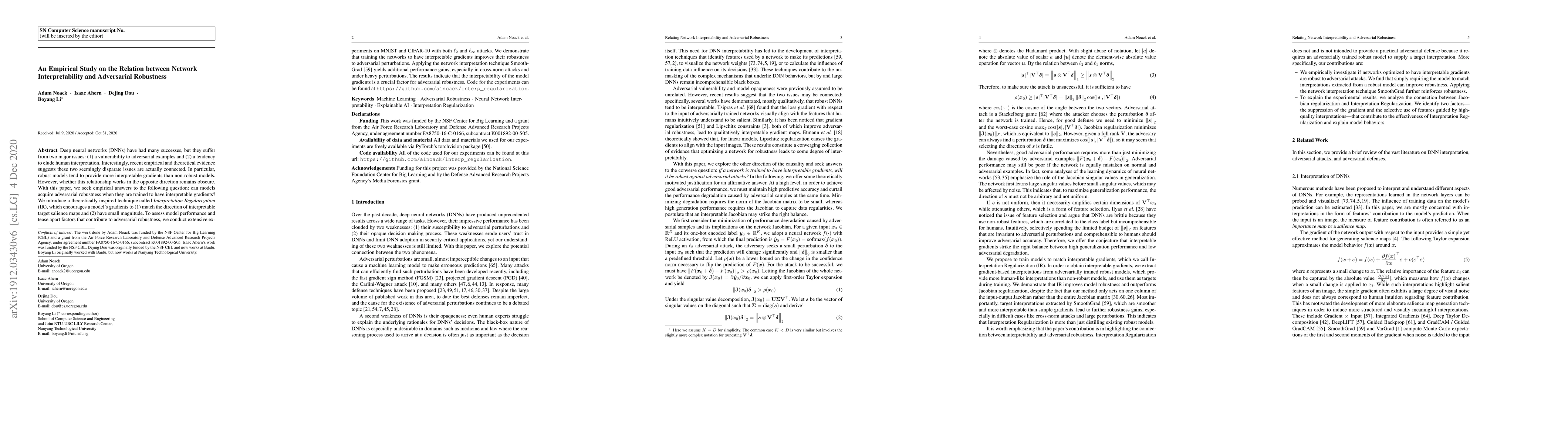 This paper investigates the connection between network interpretability and adversarial robustness in deep neural networks. It introduces Interpretation Regularization (IR) to train models with interpretable gradients, showing that such interpretability enhances robustness against adversarial attacks, with notable gains under heavy perturbations.