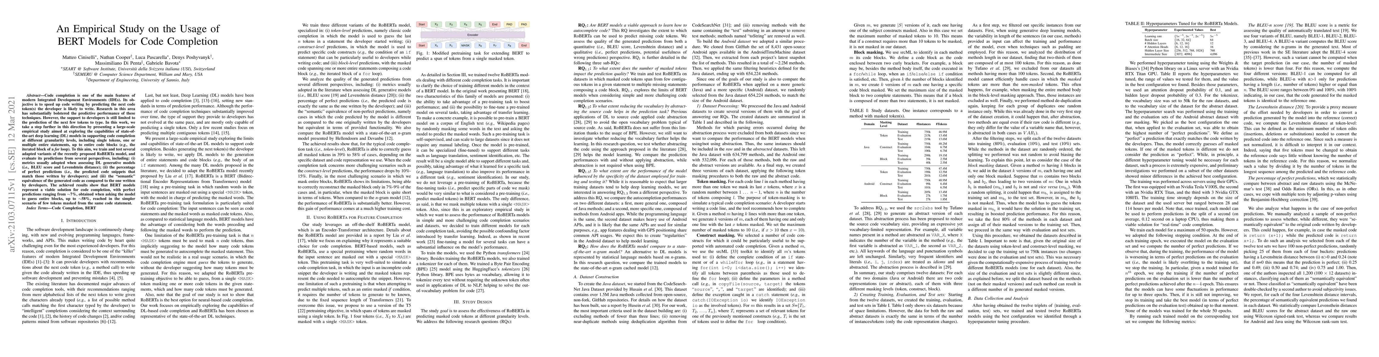 Researchers trained a variant of the RoBERTa model to improve code completion accuracy, finding that BERT models can predict entire blocks with up to 58% success rate.