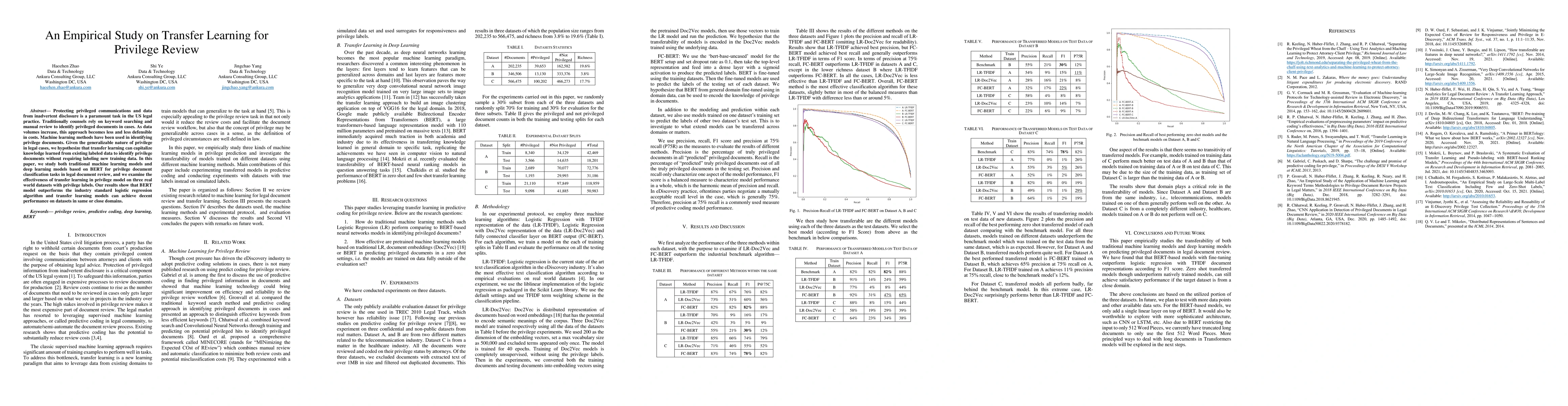 This paper explores the use of transfer learning, particularly BERT, for identifying privileged documents in legal cases, comparing its effectiveness to traditional machine learning methods. Results indicate that BERT outperforms logistic regression, and transfer learning shows promise in handling similar domain datasets.