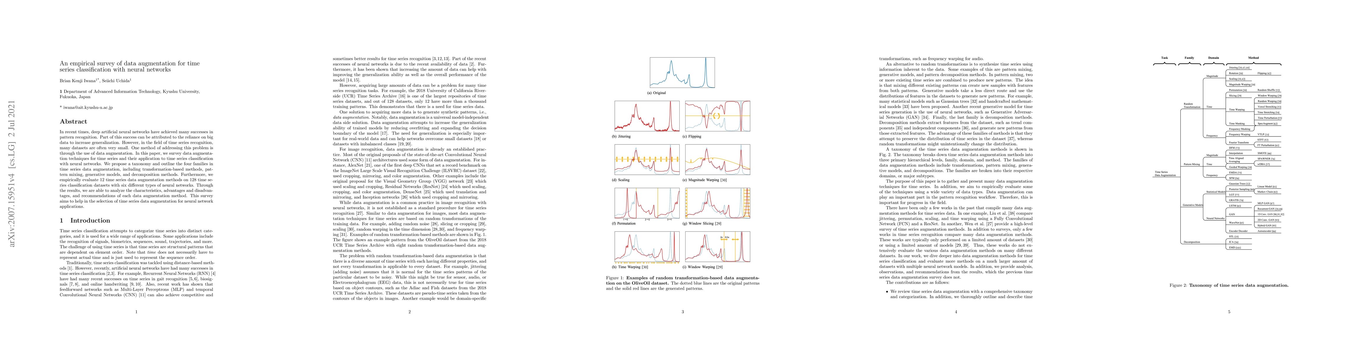The paper proposes a taxonomy for time series data augmentation methods and performs an empirical comparative evaluation, providing a comprehensive analysis of 12 data augmentation methods on 128 datasets using six neural network models.