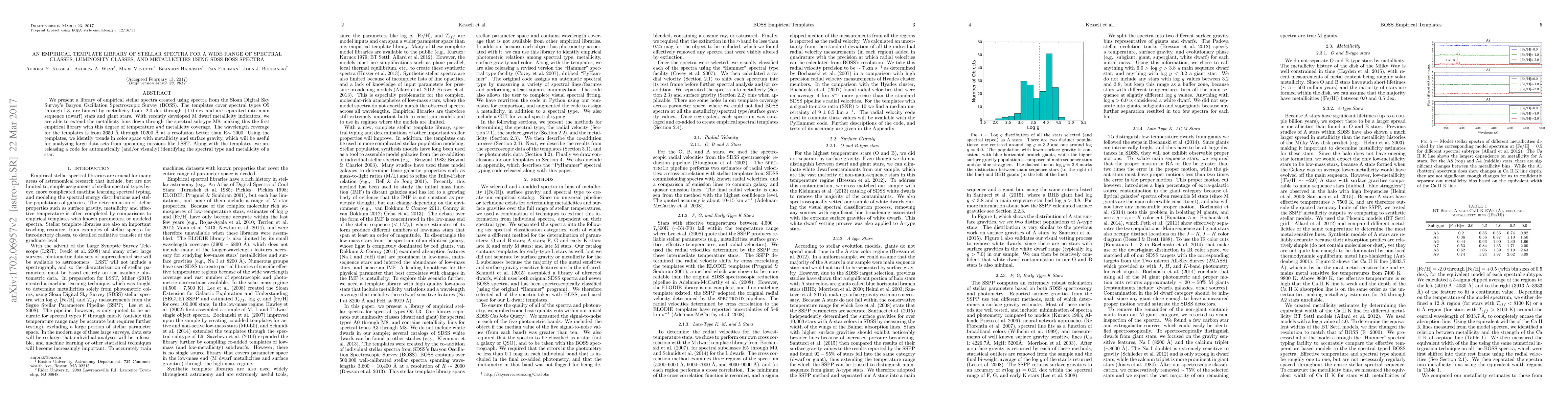 This paper presents a comprehensive empirical library of stellar spectra derived from SDSS BOSS data, covering a wide range of spectral types, metallicities, and luminosity classes. The library includes detailed trends in color space with metallicity and surface gravity, useful for future large-scale astronomical surveys.