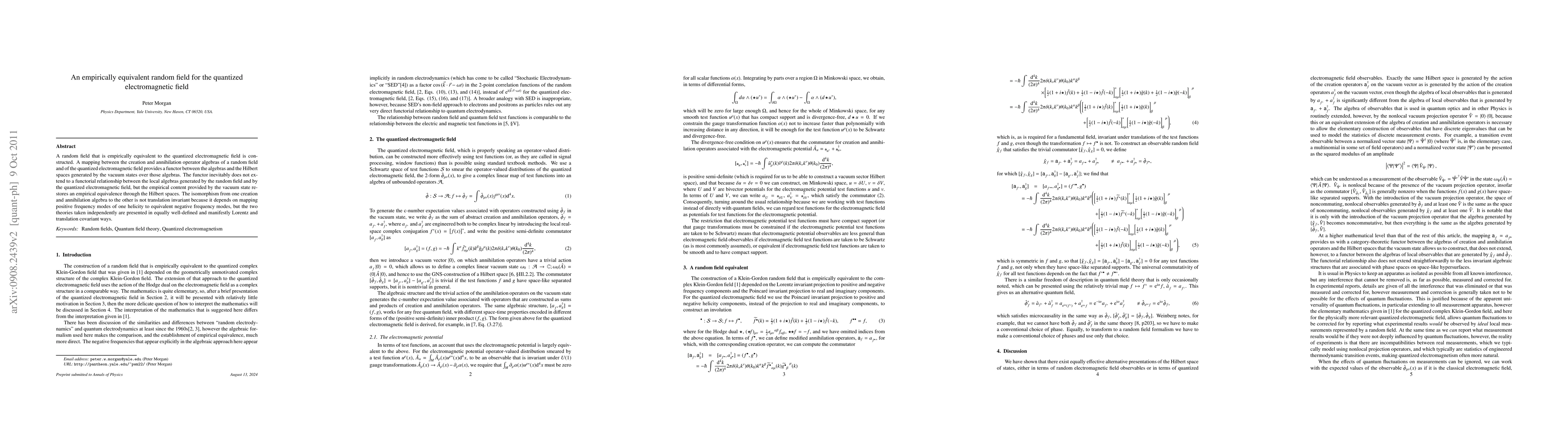 A random field that is empirically equivalent to the quantized electromagnetic field is constructed. A mapping between the creation and annihilation operator algebras of a random field and of the quantized electromagnetic field provides a functor between the algebras and the Hilbert spaces generated by the vacuum states over those algebras. The functor inevitably does not extend to a functorial relationship between the local algebras generated by the random field and by the quantized electromagnetic field, but the empirical content provided by the vacuum state restores an empirical equivalence through the Hilbert spaces. The isomorphism from one creation and annihilation algebra to the other is not translation invariant because it depends on mapping positive frequency modes of one helicity to equivalent negative frequency modes, but the two theories taken independently are presented in equally well-defined and manifestly Lorentz and translation covariant ways.