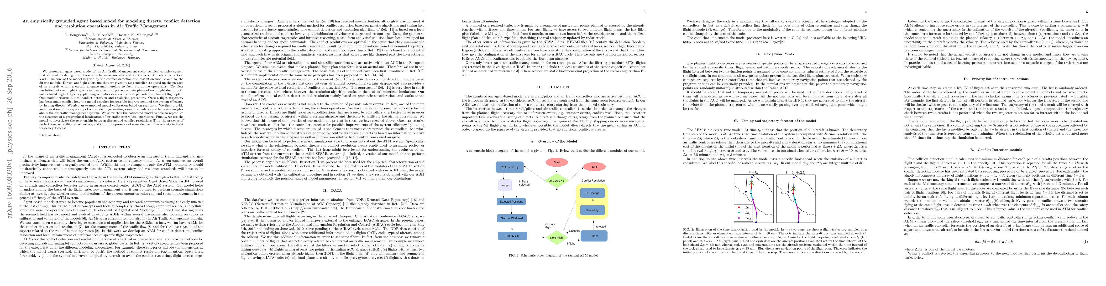 This paper introduces an empirically grounded agent-based model for simulating interactions in Air Traffic Management, focusing on conflict detection and resolution, as well as the use of flight shortcuts (directs) to enhance efficiency. The model demonstrates its ability to reproduce real-world operational patterns and investigates the impact of forecast accuracy on conflict resolution and directs.