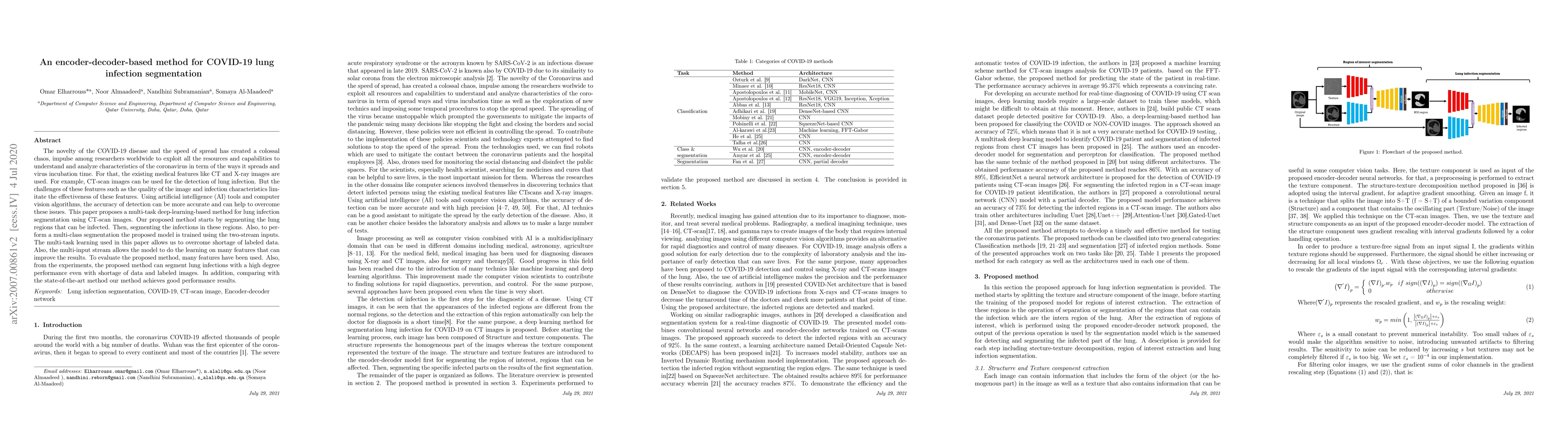 The novelty of the COVID-19 disease and the speed of spread has created a colossal chaos, impulse among researchers worldwide to exploit all the resources and capabilities to understand and analyze characteristics of the coronavirus in term of the ways it spreads and virus incubation time. For that, the existing medical features like CT and X-ray images are used. For example, CT-scan images can be used for the detection of lung infection. But the challenges of these features such as the quality of the image and infection characteristics limitate the effectiveness of these features. Using artificial intelligence (AI) tools and computer vision algorithms, the accuracy of detection can be more accurate and can help to overcome these issues. This paper proposes a multi-task deep-learning-based method for lung infection segmentation using CT-scan images. Our proposed method starts by segmenting the lung regions that can be infected. Then, segmenting the infections in these regions. Also, to perform a multi-class segmentation the proposed model is trained using the two-stream inputs. The multi-task learning used in this paper allows us to overcome shortage of labeled data. Also, the multi-input stream allows the model to do the learning on many features that can improve the results. To evaluate the proposed method, many features have been used. Also, from the experiments, the proposed method can segment lung infections with a high degree performance even with shortage of data and labeled images. In addition, comparing with the state-of-the-art method our method achieves good performance results.