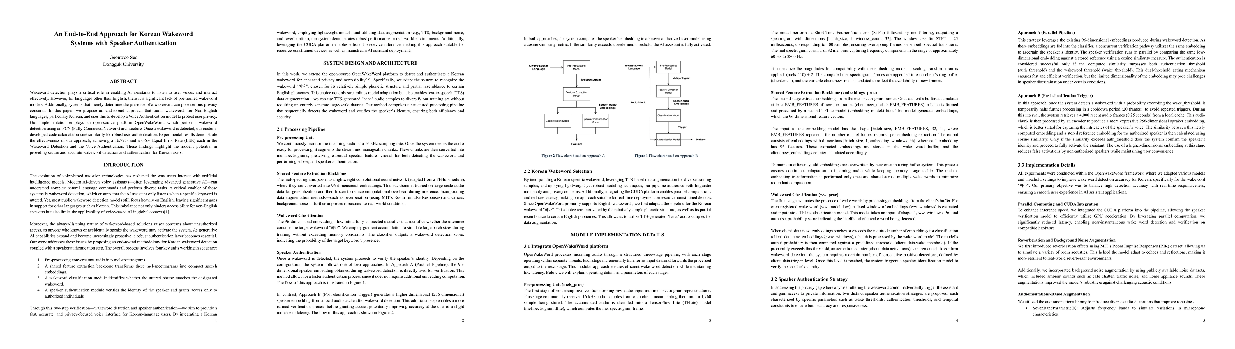 Wakeword detection plays a critical role in enabling AI assistants to listen to user voices and interact effectively. However, for languages other than English, there is a significant lack of pre-trained wakeword models. Additionally, systems that merely determine the presence of a wakeword can pose serious privacy concerns. In this paper, we propose an end-to-end approach that trains wakewords for Non-English languages, particulary Korean, and uses this to develop a Voice Authentication model to protect user privacy. Our implementation employs an open-source platform OpenWakeWord, which performs wakeword detection using an FCN (Fully-Connected Network) architecture. Once a wakeword is detected, our custom-developed code calculates cosine similarity for robust user authentication. Experimental results demonstrate the effectiveness of our approach, achieving a 16.79% and a 6.6% Equal Error Rate (EER) each in the Wakeword Detection and the Voice Authentication. These findings highlight the model's potential in providing secure and accurate wakeword detection and authentication for Korean users.