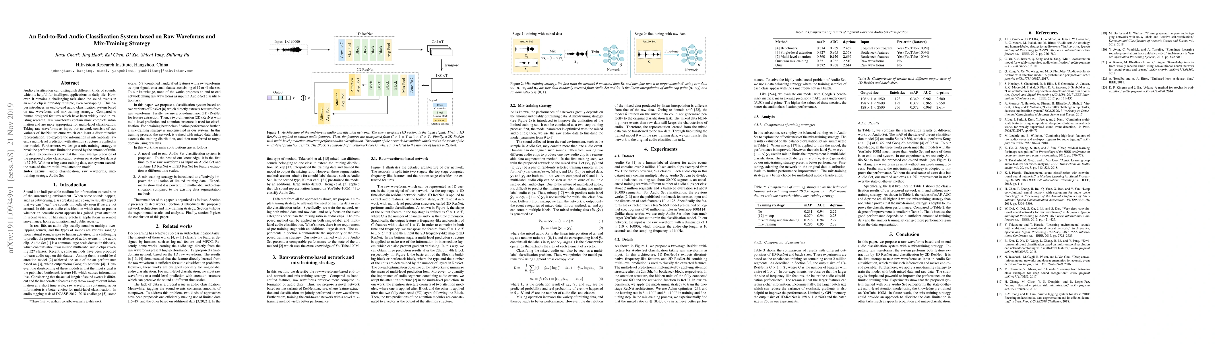 This paper proposes an end-to-end audio classification system using raw waveforms and a mix-training strategy, achieving superior performance on the Audio Set dataset with a mean average precision of 37.2%, surpassing existing models that rely on human-designed features.