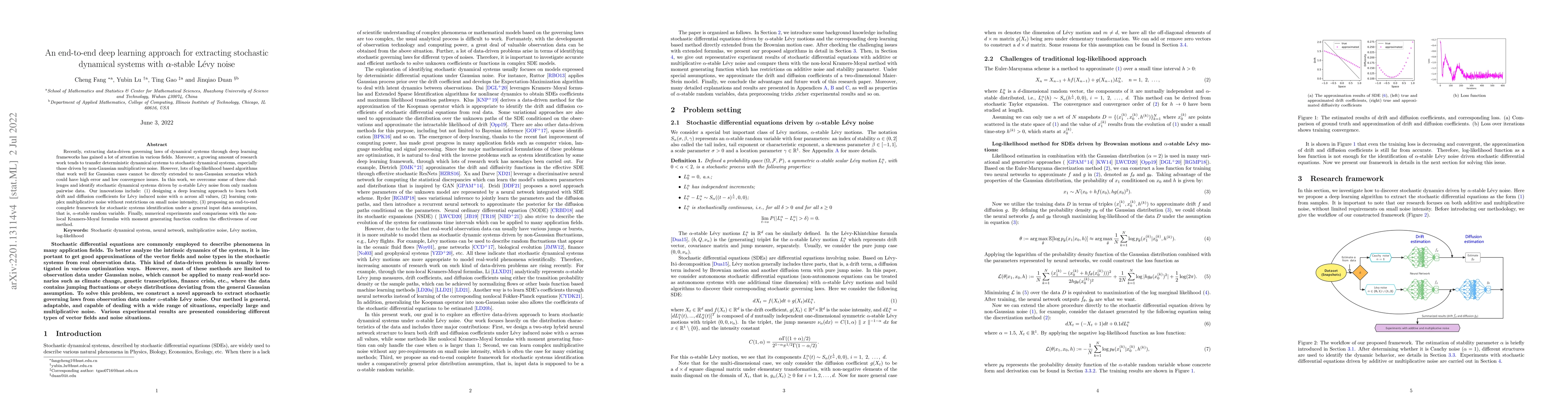 Recently, extracting data-driven governing laws of dynamical systems through deep learning frameworks has gained a lot of attention in various fields. Moreover, a growing amount of research work tends to transfer deterministic dynamical systems to stochastic dynamical systems, especially those driven by non-Gaussian multiplicative noise. However, lots of log-likelihood based algorithms that work well for Gaussian cases cannot be directly extended to non-Gaussian scenarios which could have high error and low convergence issues. In this work, we overcome some of these challenges and identify stochastic dynamical systems driven by $\alpha$-stable L\'evy noise from only random pairwise data. Our innovations include: (1) designing a deep learning approach to learn both drift and diffusion coefficients for L\'evy induced noise with $\alpha$ across all values, (2) learning complex multiplicative noise without restrictions on small noise intensity, (3) proposing an end-to-end complete framework for stochastic systems identification under a general input data assumption, that is, $\alpha$-stable random variable. Finally, numerical experiments and comparisons with the non-local Kramers-Moyal formulas with moment generating function confirm the effectiveness of our method.
