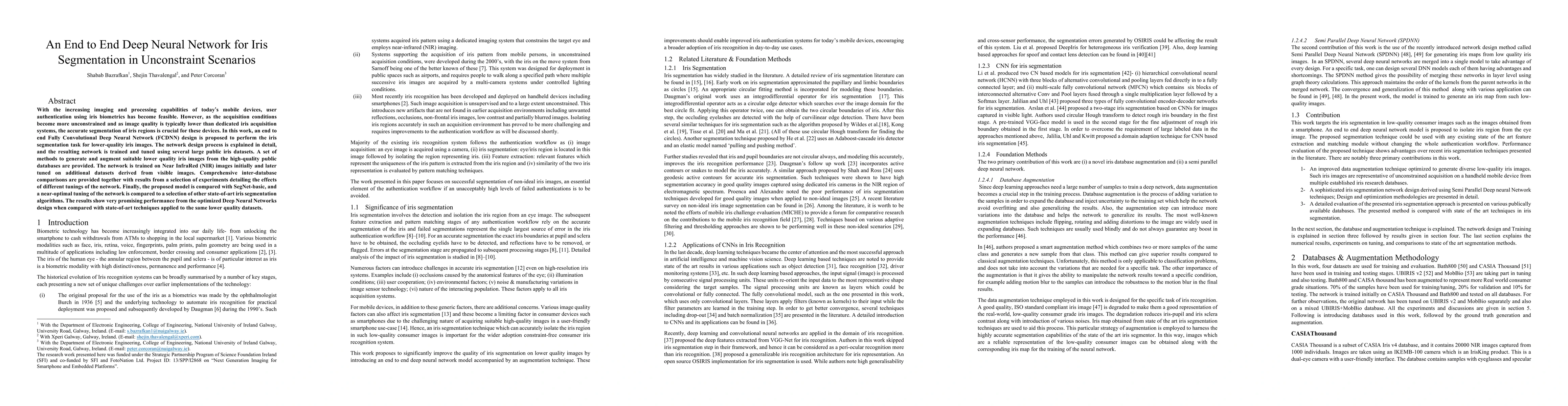This paper presents an end-to-end Fully Convolutional Deep Neural Network (FCDNN) for iris segmentation in lower-quality, unconstrained images. The proposed network is trained and optimized using various public datasets, showing promising results compared to state-of-the-art iris segmentation algorithms.
