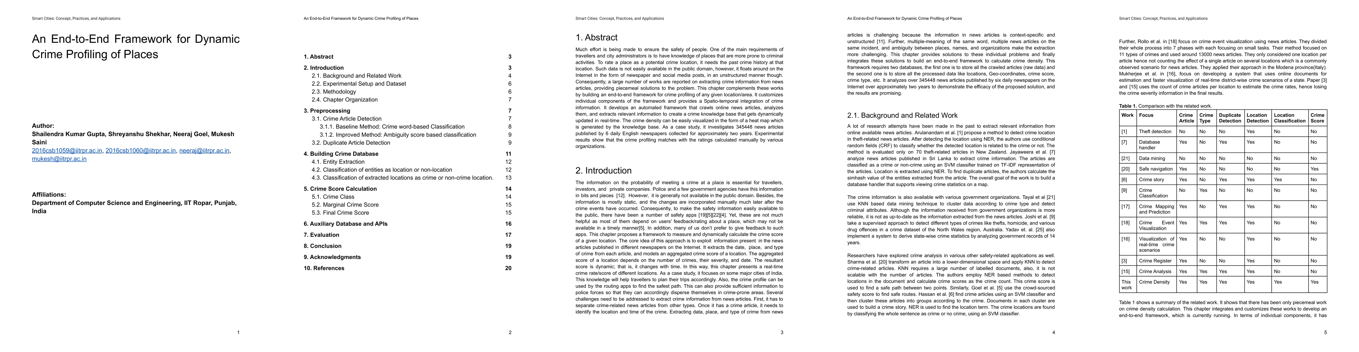 Much effort is being made to ensure the safety of people. One of the main requirements of travellers and city administrators is to have knowledge of places that are more prone to criminal activities. To rate a place as a potential crime location, it needs the past crime history at that location. Such data is not easily available in the public domain, however, it floats around on the Internet in the form of newspaper and social media posts, in an unstructured manner though. Consequently, a large number of works are reported on extracting crime information from news articles, providing piecemeal solutions to the problem. This chapter complements these works by building an end-to-end framework for crime profiling of any given location/area. It customizes individual components of the framework and provides a Spatio-temporal integration of crime information. It develops an automated framework that crawls online news articles, analyzes them, and extracts relevant information to create a crime knowledge base that gets dynamically updated in real-time. The crime density can be easily visualized in the form of a heat map which is generated by the knowledge base. As a case study, it investigates 345448 news articles published by 6 daily English newspapers collected for approximately two years. Experimental results show that the crime profiling matches with the ratings calculated manually by various organizations.