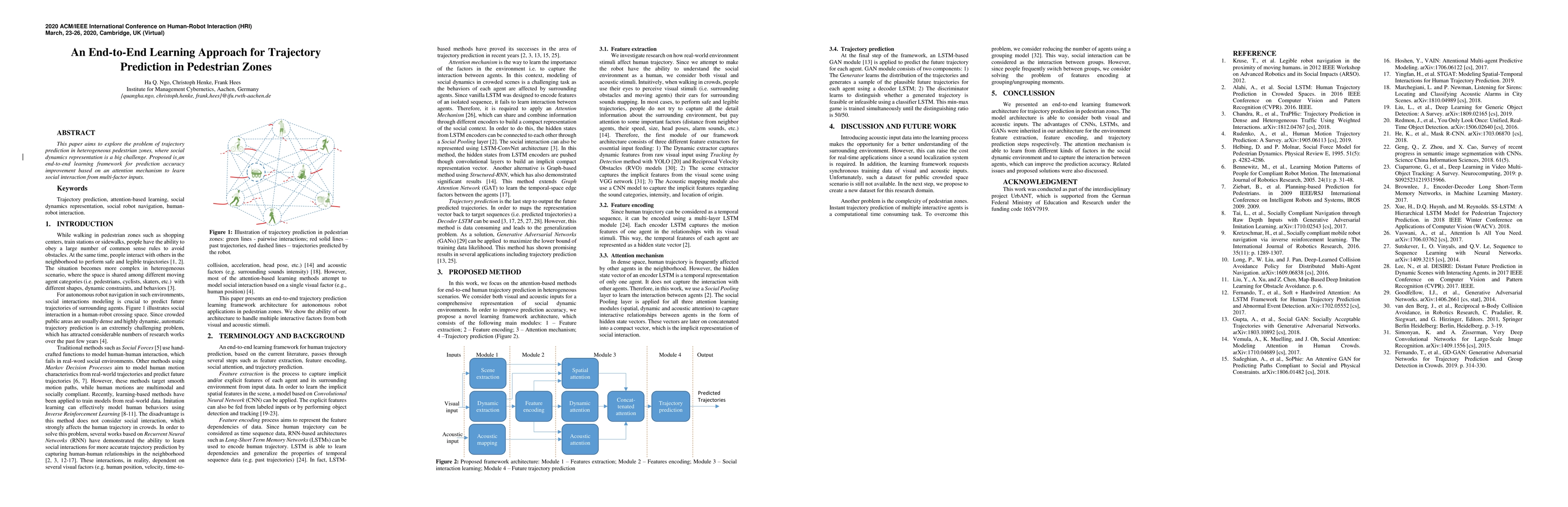 Summary: This paper introduces an end-to-end learning framework for enhancing trajectory prediction in pedestrian zones by employing an attention mechanism to better capture social dynamics from diverse input factors. The approach aims to improve prediction accuracy in complex, heterogeneous environments.