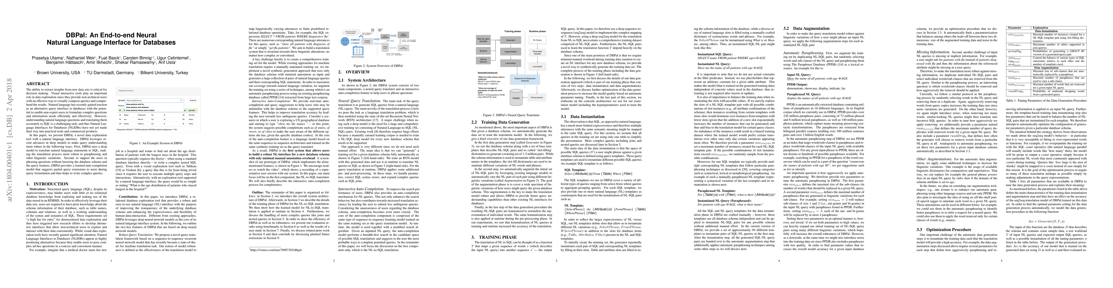 This paper introduces DBPal, a neural natural language interface for databases that uses deep models to robustly translate natural language queries into SQL and provides an auto-completion feature to assist users in formulating complex queries without needing database schema knowledge.