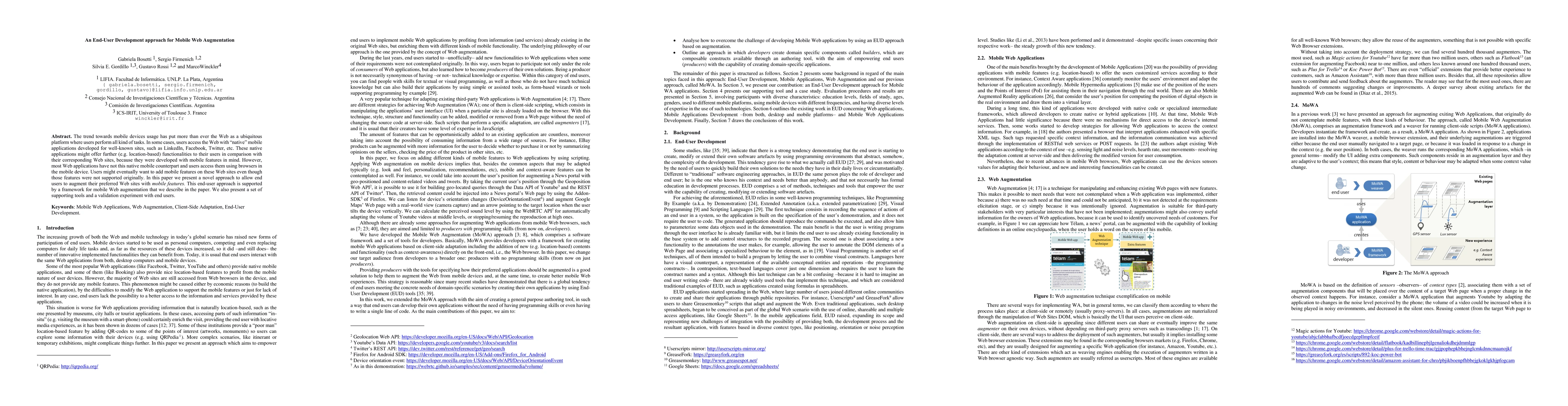 This research paper introduces a novel approach to allow end users to add mobile features to their preferred Web sites without native mobile applications. It presents a framework and supporting tools for mobile Web augmentation, enabling users to enhance their online experience with location-based functionalities.