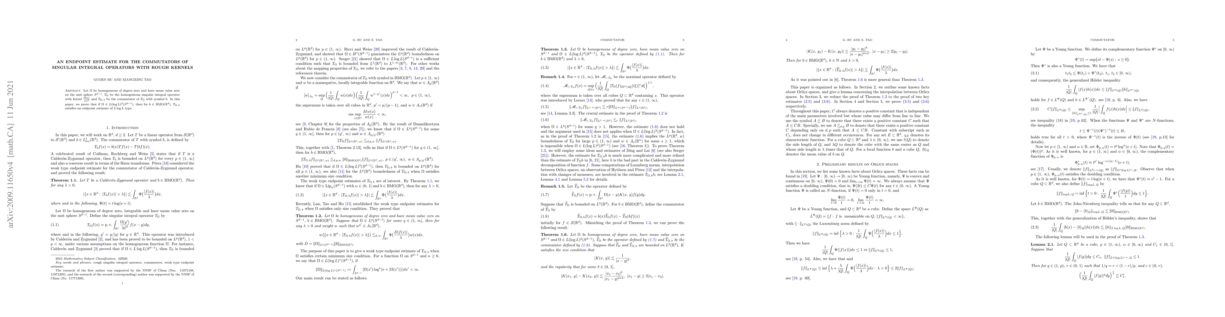 This paper proves that if the kernel $\Omega$ of the singular integral operator $T_{\Omega}$ satisfies $\Omega\in L(\log L)^2(S^{d-1})$, then the commutator $T_{\Omega,\,b}$ with symbol $b\in {\rm BMO}(\mathbb{R}^d)$ satisfies an endpoint estimate of $L\log L$ type.