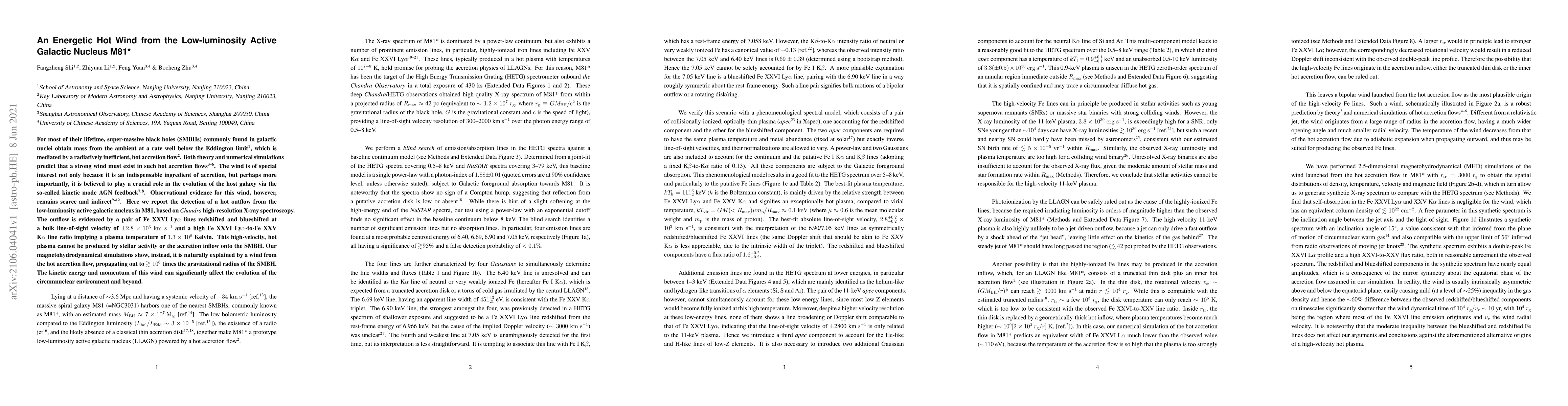 This paper reports the detection of a hot energetic wind from the low-luminosity active galactic nucleus in M81 using {\it Chandra} X-ray spectroscopy, evidenced by redshifted and blueshifted Fe XXVI Ly$\alpha$ lines. This wind, originating from the hot accretion flow, has implications for the evolution of the host galaxy via kinetic mode AGN feedback.