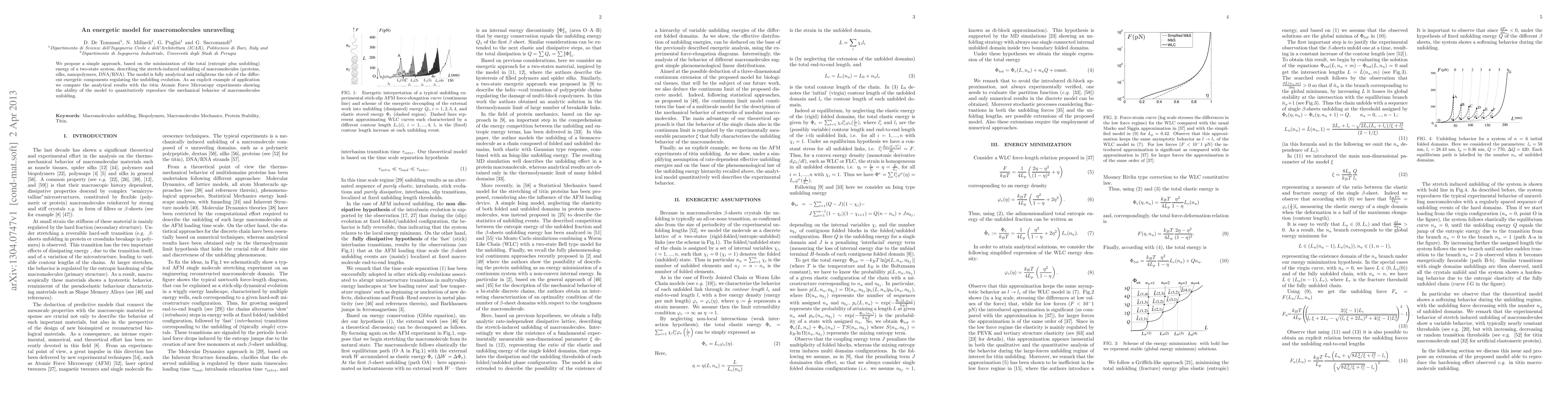 This paper presents a straightforward energy-based model to describe how stretching causes macromolecules like proteins and DNA to unfold. The model, based on minimizing total energy (entropic and unfolding), is fully analytical and successfully explains the factors controlling unfolding. It's validated by comparing theoretical predictions with experimental AFM data on titin, demonstrating its capacity to accurately mirror macromolecule unfolding mechanics.