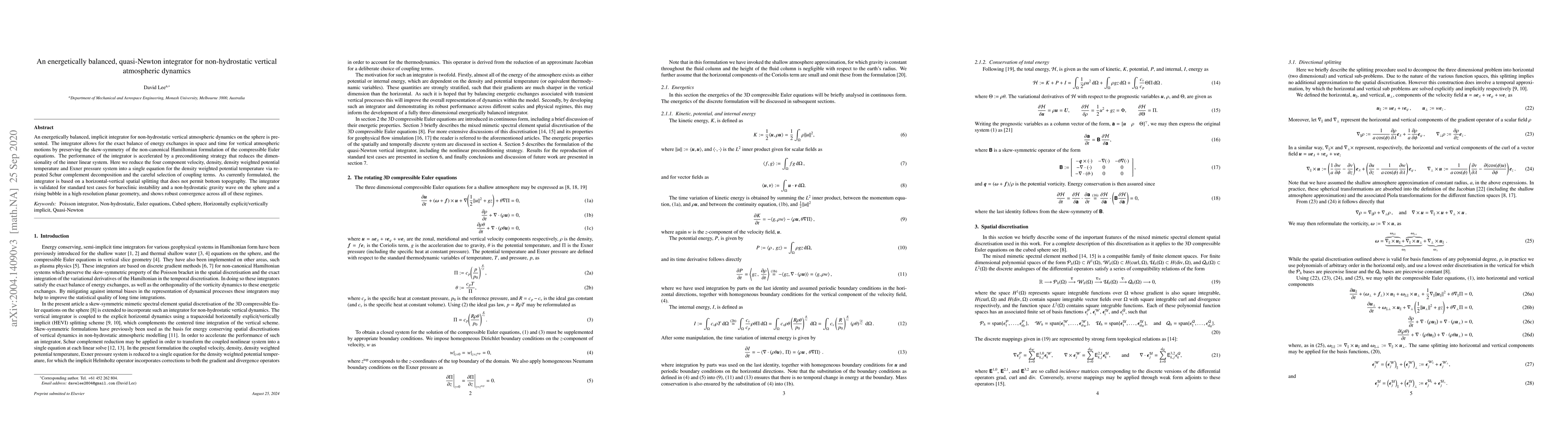 A new integrator for simulating non-hydrostatic vertical atmospheric dynamics on a sphere is presented, allowing for exact energy balance and robust convergence in different regimes.