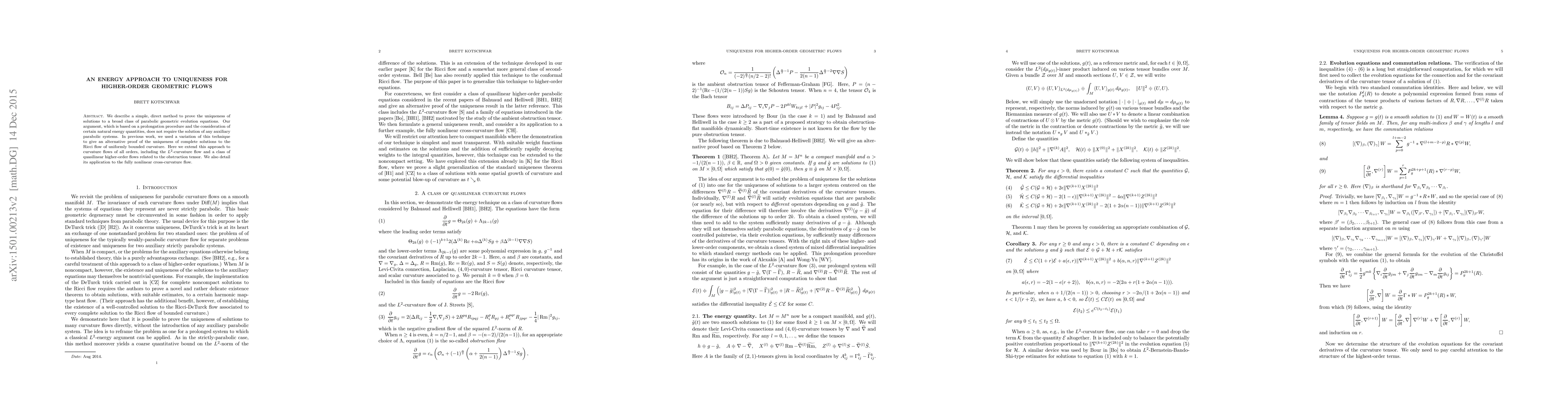 Researchers prove uniqueness of solutions to parabolic geometric evolution equations using a classical energy argument, extending it to higher-order curvature flows.