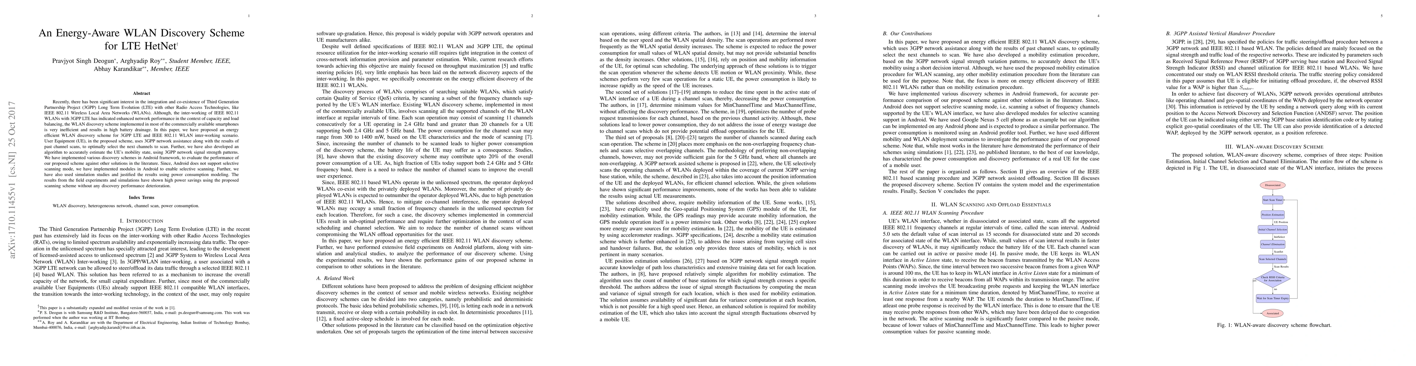 A new energy-aware WLAN discovery scheme for LTE HetNet has been proposed to reduce battery drainage in smartphones with integrated 3GPP LTE and IEEE 802.11 networks, achieving high power savings without compromising performance.
