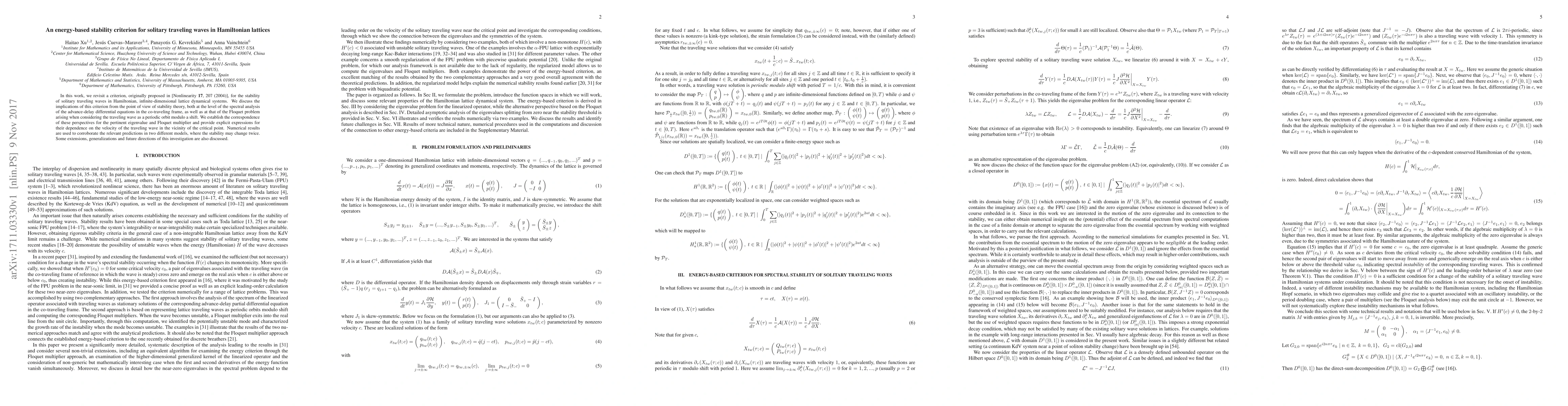 The paper presents an energy-based stability criterion for solitary traveling waves in Hamiltonian lattices, linking spectral analysis and Floquet theory to characterize stability transitions.