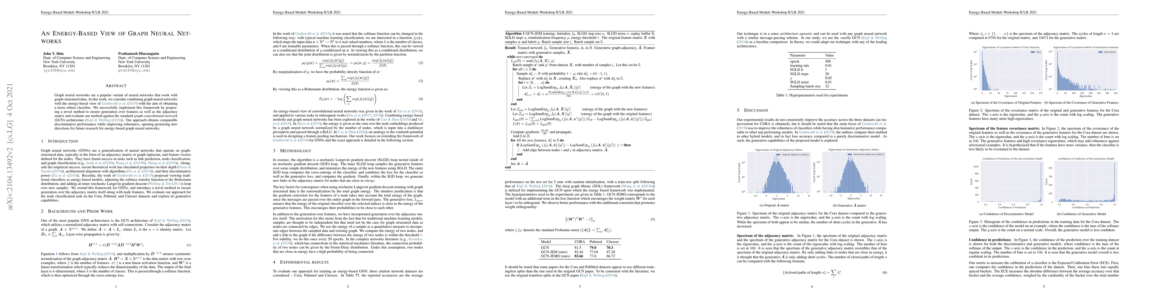 This paper combines graph neural networks with an energy-based view to enhance classifier robustness. The proposed method achieves comparable performance to standard graph convolutional networks while improving robustness, suggesting new avenues for future research in energy-based graph neural networks.