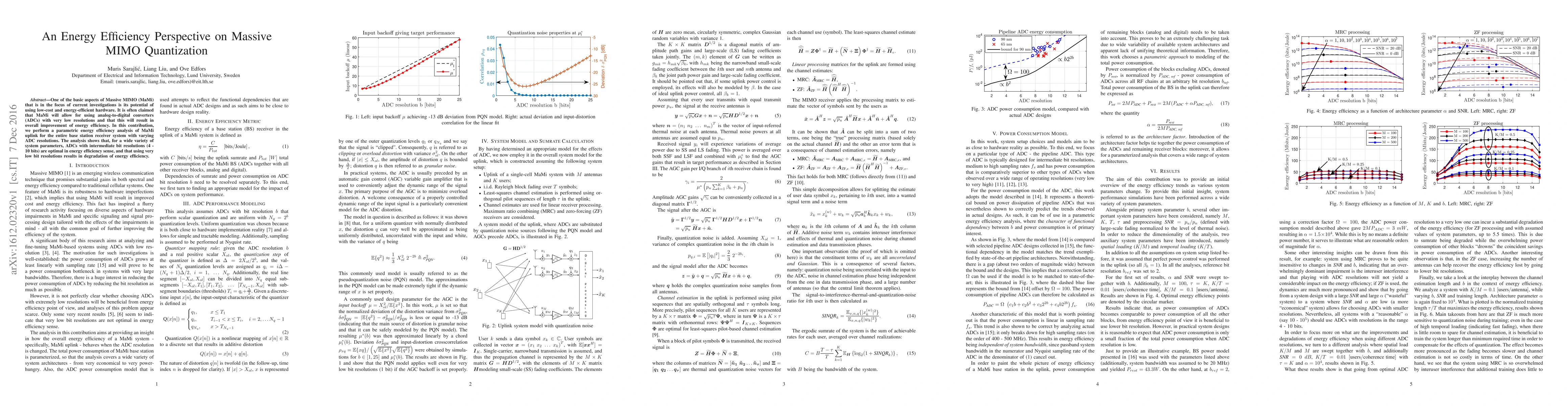 One of the basic aspects of Massive MIMO (MaMi) that is in the focus of current investigations is its potential of using low-cost and energy-efficient hardware. It is often claimed that MaMi will allow for using analog-to-digital converters (ADCs) with very low resolutions and that this will result in overall improvement of energy efficiency. In this contribution, we perform a parametric energy efficiency analysis of MaMi uplink for the entire base station receiver system with varying ADC resolutions. The analysis shows that, for a wide variety of system parameters, ADCs with intermediate bit resolutions (4 - 10 bits) are optimal in energy efficiency sense, and that using very low bit resolutions results in degradation of energy efficiency.