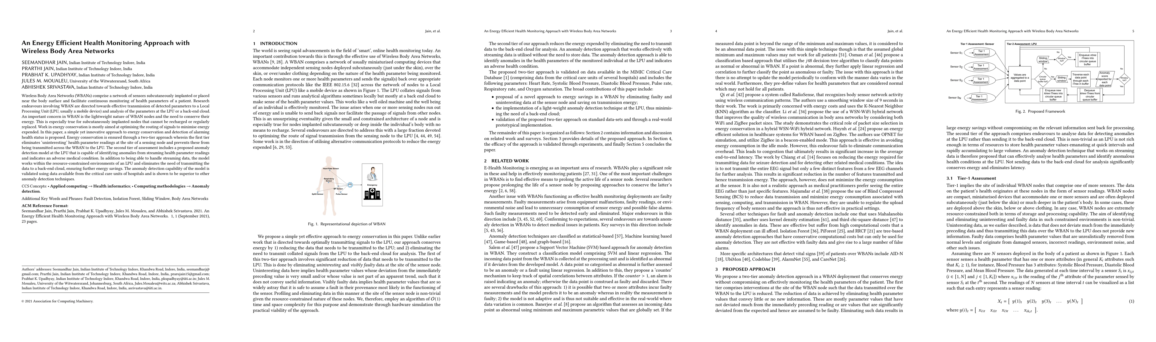 A new approach to energy-efficient health monitoring uses a two-tier system to eliminate 90% of unnecessary data transmission from wearable sensors, reducing energy consumption. The system also includes an anomaly detection model that identifies adverse medical conditions without requiring cloud transmission or additional energy expenditure.