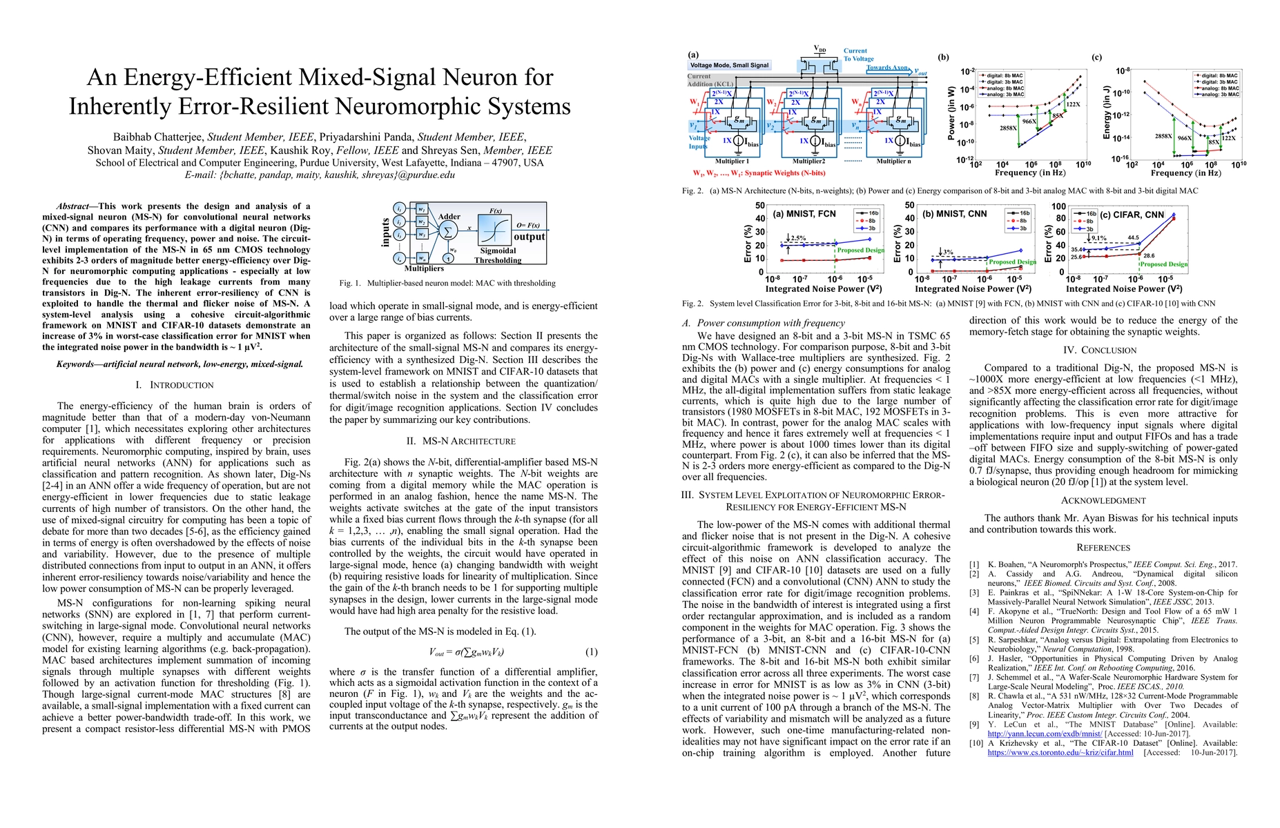 This paper introduces a mixed-signal neuron designed for convolutional neural networks, showcasing significant energy efficiency improvements over digital counterparts in neuromorphic computing applications. The study highlights the neuron's performance in 65 nm CMOS technology, emphasizing its error-resilience and system-level analysis on MNIST and CIFAR-10 datasets.