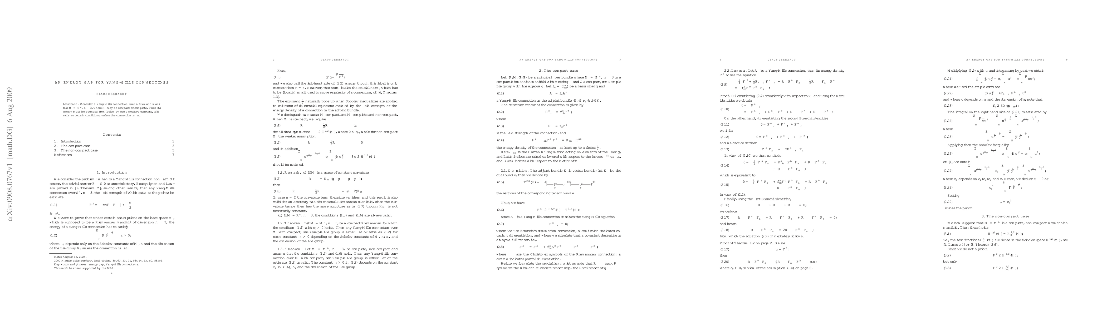 Consider a Yang-Mills connection over a Riemann manifold $M=M^n$, $n\ge 3$, where $M$ may be compact or complete. Then its energy must be bounded from below by some positive constant, if $M$ satisfies certain conditions, unless the connection is flat.