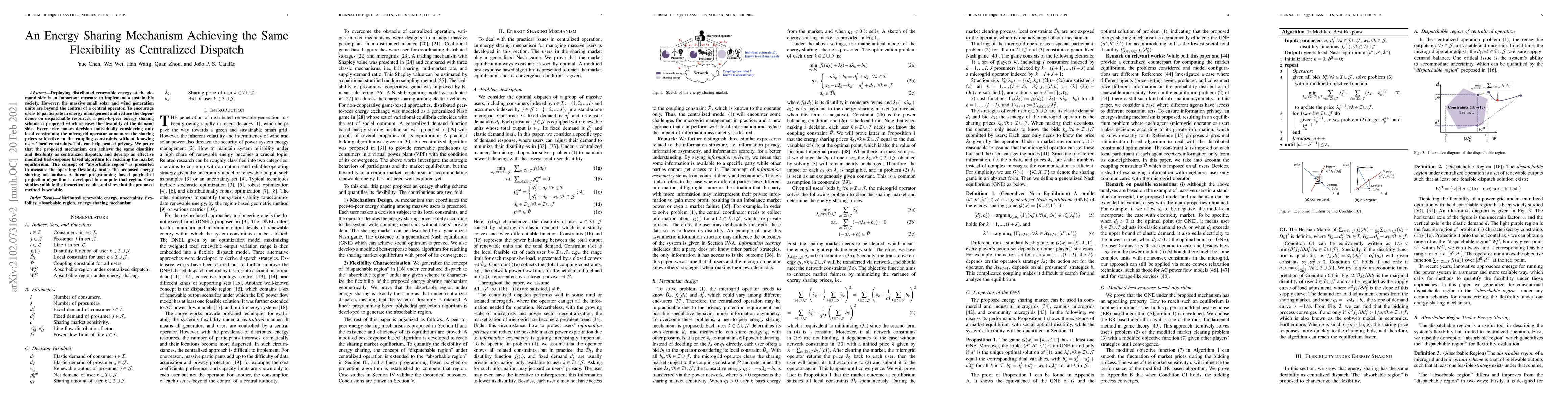 A peer-to-peer energy sharing scheme allows individual users to make decisions about energy management while protecting user privacy, achieving the same flexibility as centralized dispatch.