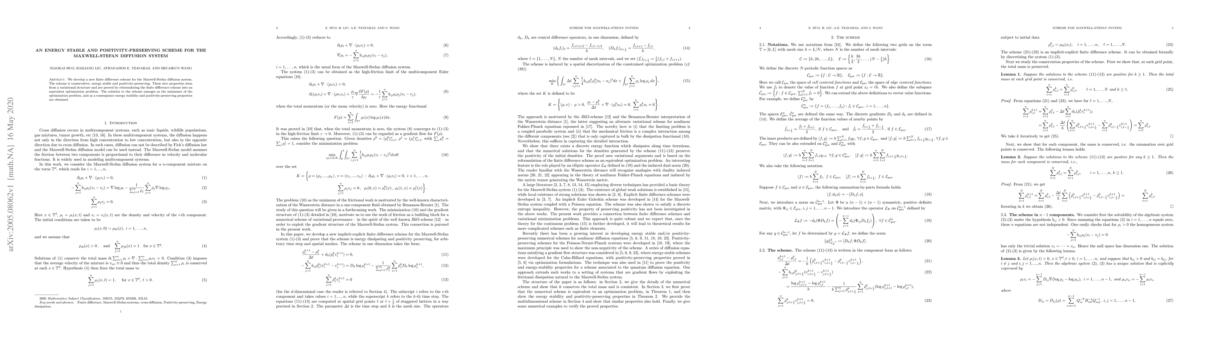 This paper introduces a new finite difference scheme for the Maxwell-Stefan diffusion system that is conservative, energy stable, and positivity-preserving. These properties are derived from a variational structure and are demonstrated by reformulating the scheme into an equivalent optimization problem.