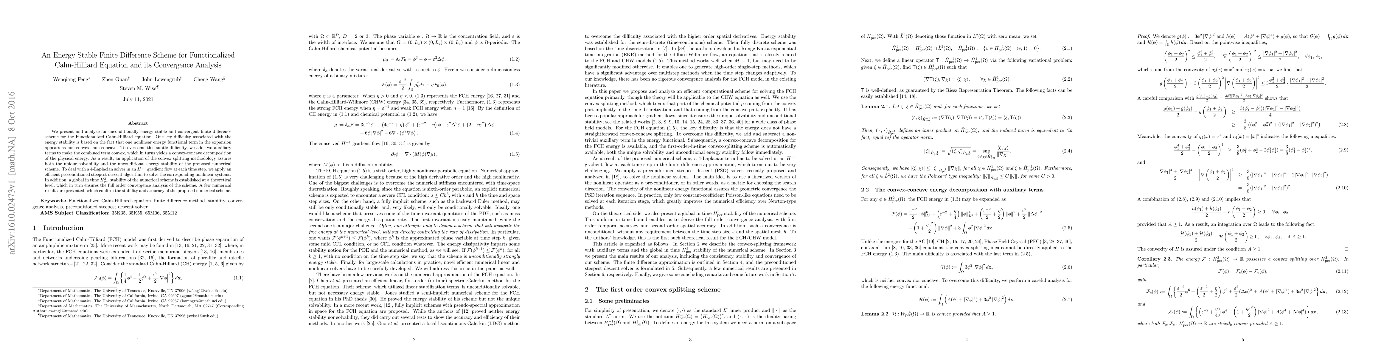 This paper proposes an unconditionally energy stable and convergent finite-difference scheme for the Functionalized Cahn-Hilliard equation, addressing non-convex terms by adding auxiliary terms to achieve a convex-concave decomposition. The scheme's stability and convergence are theoretically proven, and numerical results confirm its stability and accuracy.