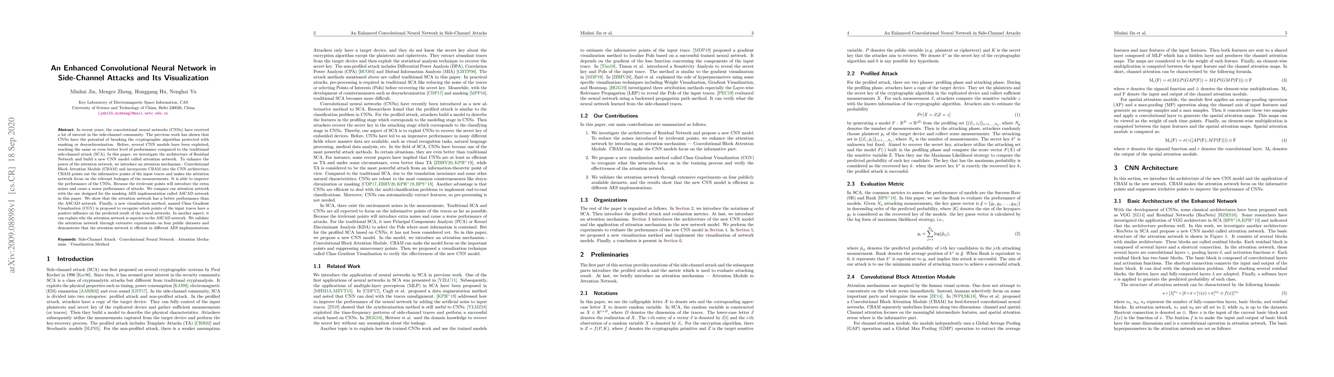 This paper proposes an enhanced convolutional neural network (CNN) called the attention network, incorporating the Convolutional Block Attention Module (CBAM) for improved side-channel attack performance. The attention network, which focuses on informative leakage points, outperforms the ASCAD network and is validated through experiments on four public datasets, with a new visualization method, Class Gradient Visualization (CGV), explaining its superior performance.