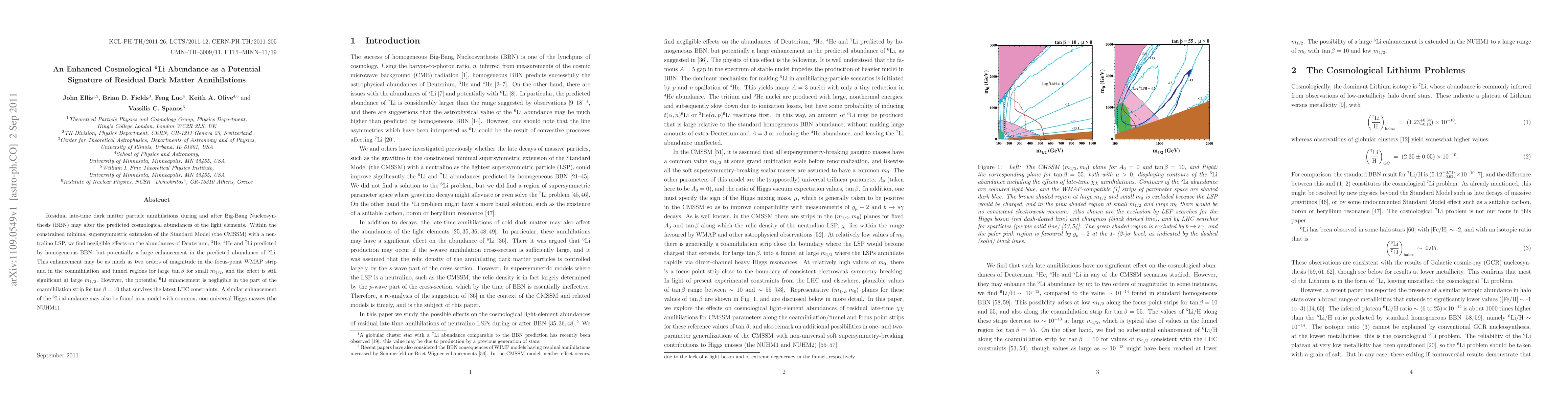 Residual late-time dark matter particle annihilations during and after Big Bang Nucleosynthesis (BBN) may alter the predicted cosmological abundances of the light elements. Within the constrained minimal supersymmetric extension of the Standard Model (the CMSSM) with a neutralino LSP, we find negligible effects on the abundances of Deuterium, He3, He4 and Li7 predicted by homogeneous BBN, but potentially a large enhancement in the predicted abundance of Li6. This enhancement may be as much as two orders of magnitude in the focus-point WMAP strip and in the coannihilation and funnel regions for large tan beta for small m_{1/2}, and the effect is still significant at large m_{1/2}. However, the potential Li6 enhancement is negligible in the part of the coannihilation strip for tan beta = 10 that survives the latest LHC constraints. A similar enhancement of the \li6 abundance may also be found in a model with common, non-universal Higgs masses (the NUHM1).
