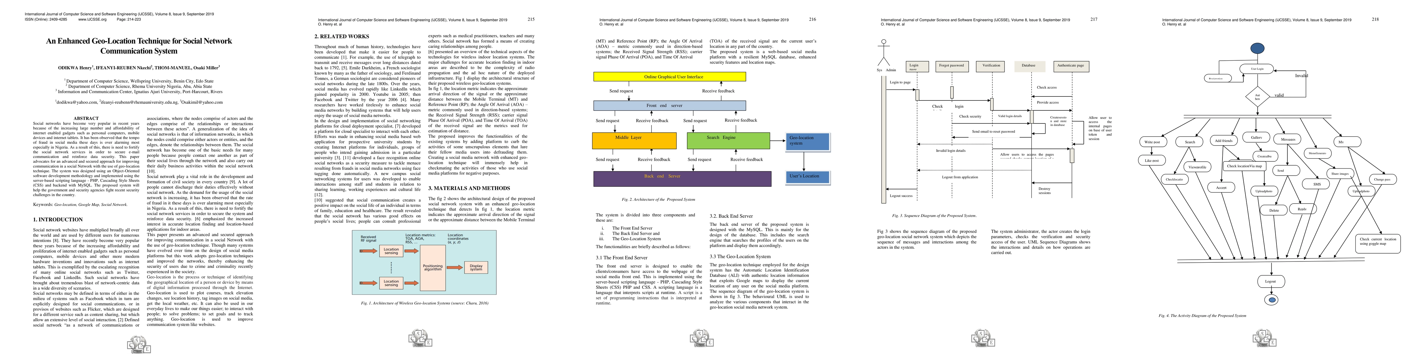 Social networks have become very popular in recent years because of the increasing large number and affordability of internet enabled gadgets such as personal computers, mobile devices and internet tablets. It has been observed that the tempo of fraud in social media these days is over alarming most especially in Nigeria. As a result of this, there is need to fortify the social network services in order to secure e-mail communication and reinforce data security. This paper advocates for an advanced and secured approach for improving communication in a social Network with the use of geo-location technique. The system was designed using an Object-Oriented software development methodology and implemented using the server-based scripting language - PHP, Cascading Style Sheets (CSS) and back-end with MySQL. The proposed system will help the government and security agencies fight recent security challenges in the country.