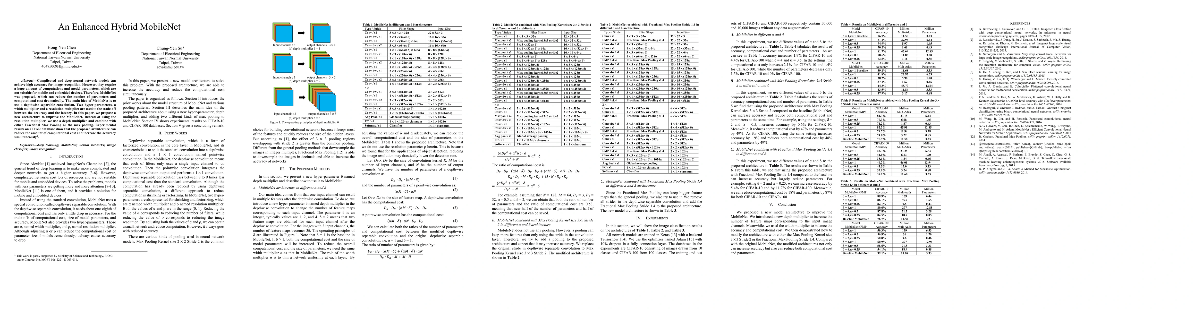 This paper proposes an enhanced hybrid MobileNet architecture that uses a depth multiplier instead of a resolution multiplier, combined with either Fractional Max Pooling or max pooling, to balance computational efficiency with accuracy. Experimental results on the CIFAR database demonstrate reduced computational costs and improved accuracy over traditional MobileNet models.