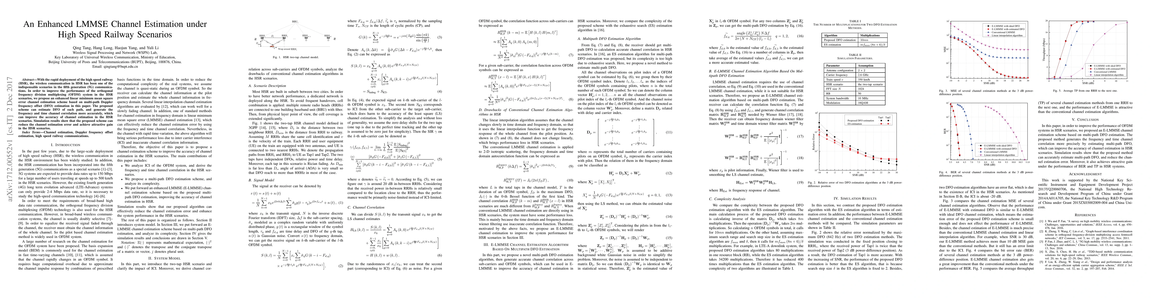 This paper proposes an enhanced linear minimum mean square error (LMMSE) channel estimation scheme for high speed railway (HSR) scenarios to improve 5G OFDM system performance. The scheme estimates multi-path Doppler frequency offset (DFO) for each path, generating more accurate frequency and time channel correlation, thereby reducing channel estimation error and achieving better performance.