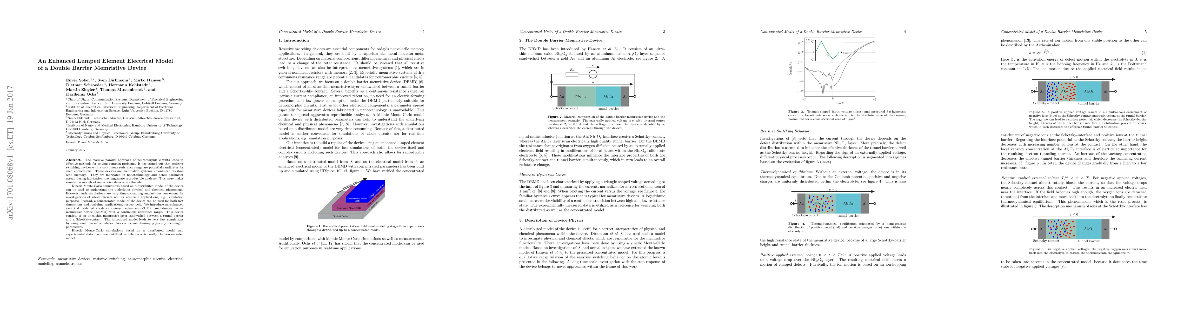 This paper introduces an enhanced lumped element electrical model for a double barrier memristive device (DBMD) with a continuous resistance range, aiming to facilitate fast simulations and real-time applications. The model is validated against kinetic Monte-Carlo simulations and experimental data.
