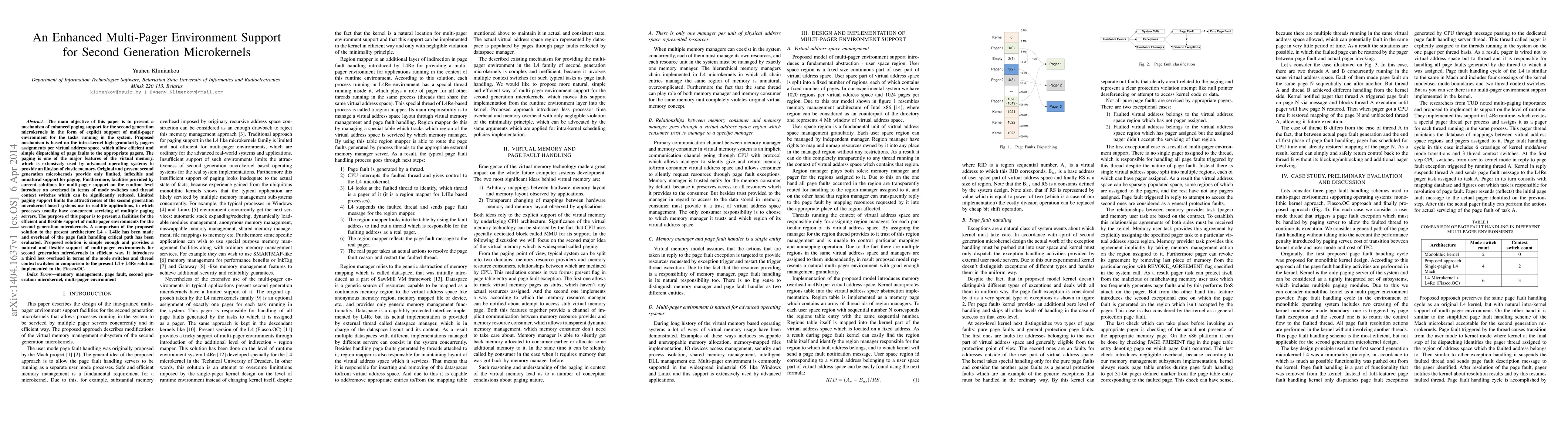 Researchers propose an enhanced paging mechanism for second-generation microkernels to support multi-pager environments, aiming to improve efficiency and reduce overhead in page fault handling.
