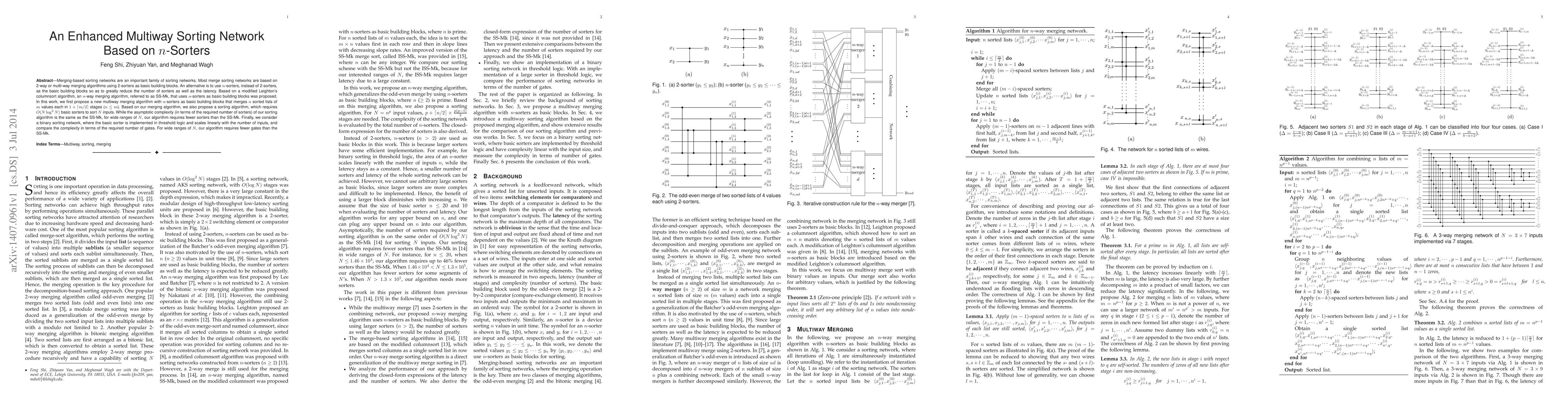 Merging-based sorting networks are an important family of sorting networks. Most merge sorting networks are based on 2-way or multi-way merging algorithms using 2-sorters as basic building blocks. An alternative is to use n-sorters, instead of 2-sorters, as the basic building blocks so as to greatly reduce the number of sorters as well as the latency. Based on a modified Leighton's columnsort algorithm, an n-way merging algorithm, referred to as SS-Mk, that uses n-sorters as basic building blocks was proposed. In this work, we first propose a new multiway merging algorithm with n-sorters as basic building blocks that merges n sorted lists of m values each in 1 + ceil(m/2) stages (n <= m). Based on our merging algorithm, we also propose a sorting algorithm, which requires O(N log2 N) basic sorters to sort N inputs. While the asymptotic complexity (in terms of the required number of sorters) of our sorting algorithm is the same as the SS-Mk, for wide ranges of N, our algorithm requires fewer sorters than the SS-Mk. Finally, we consider a binary sorting network, where the basic sorter is implemented in threshold logic and scales linearly with the number of inputs, and compare the complexity in terms of the required number of gates. For wide ranges of N, our algorithm requires fewer gates than the SS-Mk.