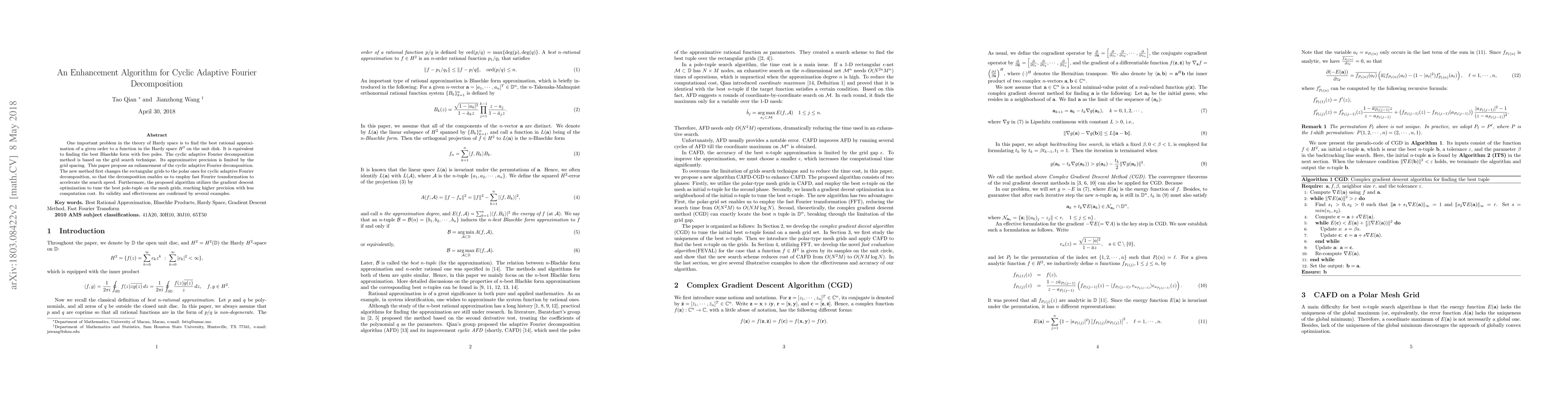 The paper investigates the complex gradient descent method (CGD) for the best rational approximation of a given order to a function in the Hardy space on the unit disk. It is equivalent to finding the best Blaschke form with free poles. The adaptive Fourier decomposition (AFD) and the cyclic AFD methods in literature are based on the grid search technique. The precision of these methods is limited by the grid spacing. The proposed method employs a fast search algorithm to find the initial for CGD, then finds the target poles by gradient descent optimization. Hence, it can reach higher precision with less computation cost. Its validity and effectiveness are confirmed by several examples.