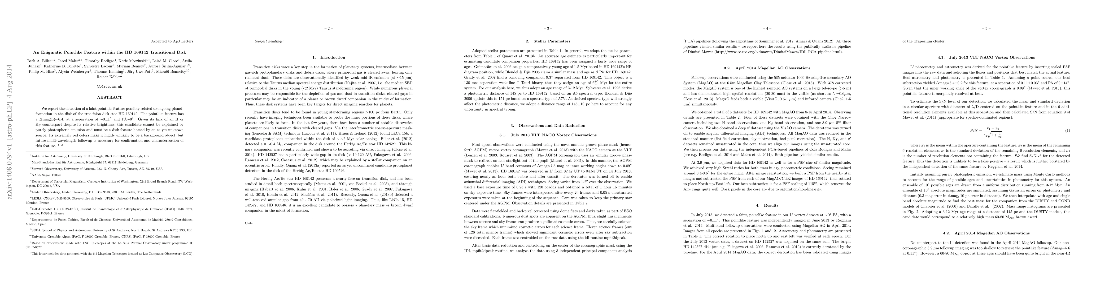 Astronomers have detected a faint pointlike feature in the disk of star HD 169142, suggesting ongoing planet formation, with properties that cannot be explained by photospheric emission.