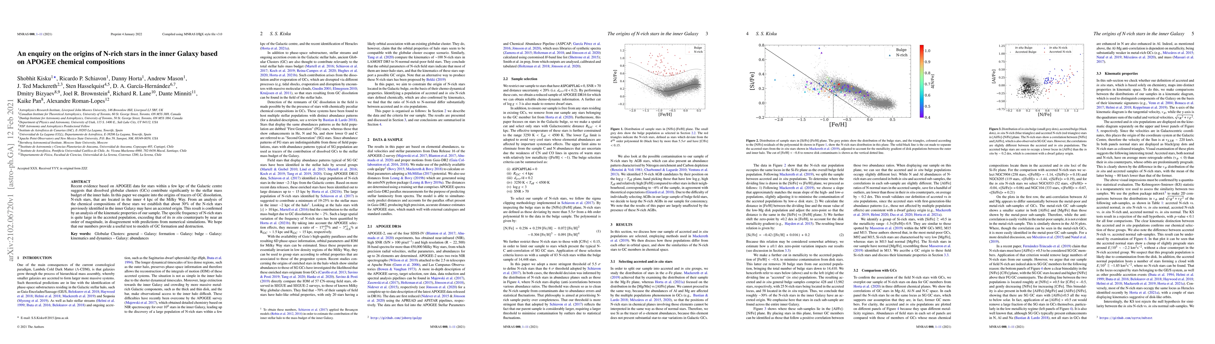 Recent evidence based on APOGEE data for stars within a few kpc of the Galactic centre suggests that dissolved globular clusters (GCs) contribute significantly to the stellar mass budget of the inner halo. In this paper we enquire into the origins of tracers of GC dissolution, N-rich stars, that are located in the inner 4 kpc of the Milky Way. From an analysis of the chemical compositions of these stars we establish that about 30% of the N-rich stars previously identified in the inner Galaxy may have an accreted origin. This result is confirmed by an analysis of the kinematic properties of our sample. The specific frequency of N-rich stars is quite large in the accreted population, exceeding that of its in situ counterparts by near an order of magnitude, in disagreement with predictions from numerical simulations. We hope that our numbers provide a useful test to models of GC formation and destruction.