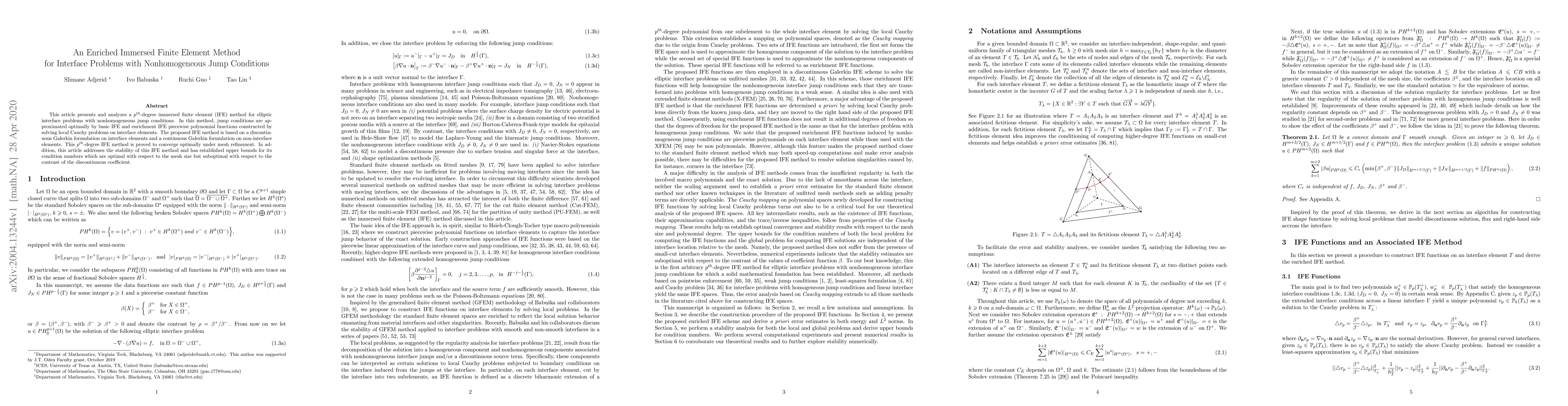 This paper introduces a $p^{th}$-degree immersed finite element method for solving elliptic interface problems with nonhomogeneous jump conditions, demonstrating optimal convergence and stability through a combination of discontinuous and continuous Galerkin formulations. The method optimally approximates jump conditions using enriched piecewise polynomial functions.