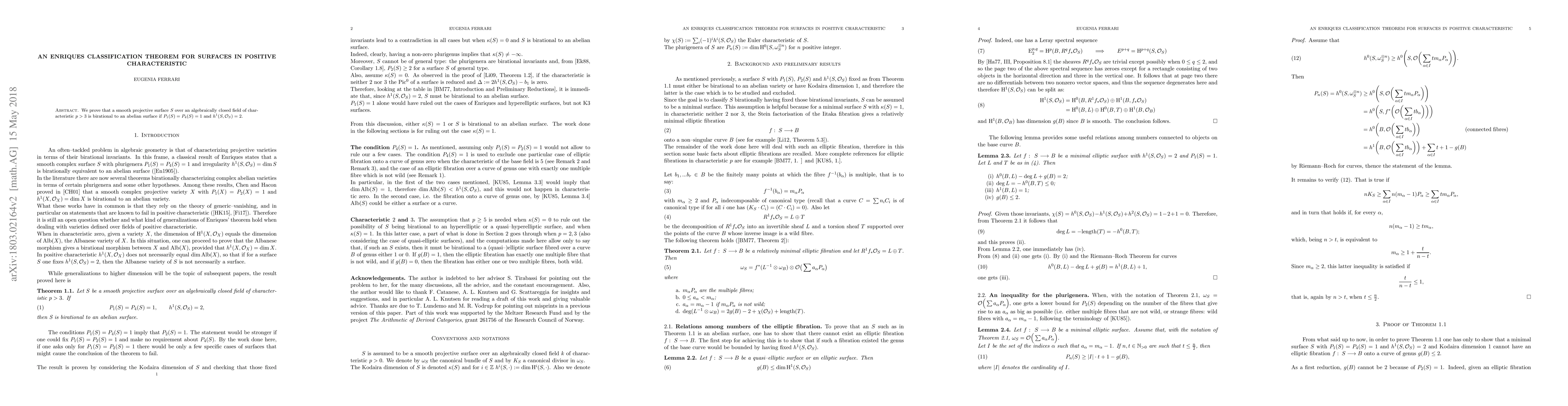 We prove that a smooth projective surface $S$ over an algebraically closed field of characteristic $p>3$ is birational to an abelian surface if $P_1(S)=P_4(S)=1$ and $h^1(S,\mathcal{O}_S)=2$.