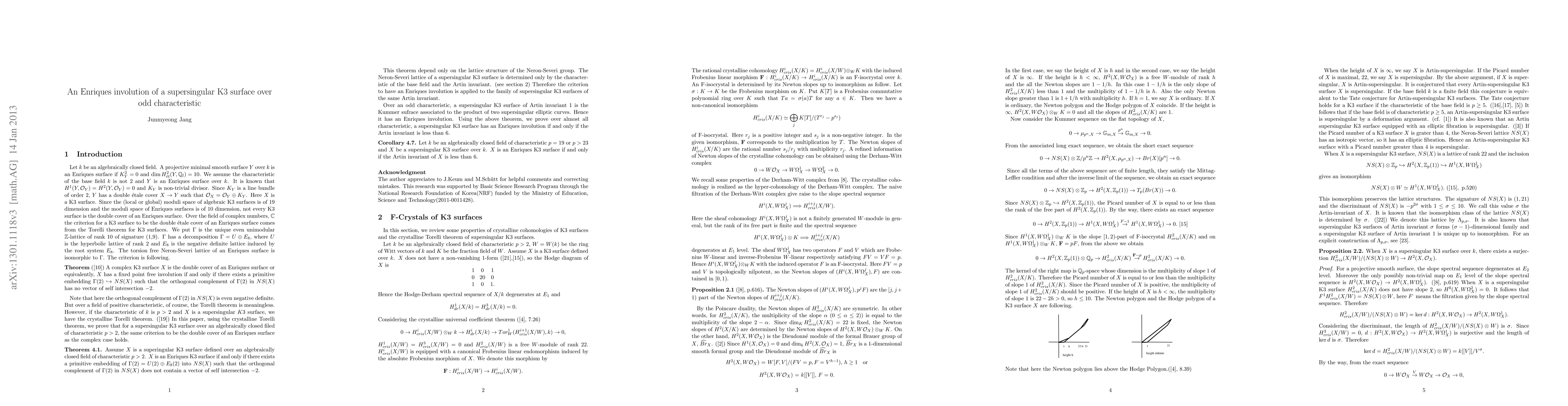 Summary: This paper proves that a supersingular K3 surface over a field of odd characteristic possesses an Enriques involution if there is a specific lattice embedding, and demonstrates that for fields of characteristics 19 or greater than 23, such surfaces are Enriques K3 surfaces when their Artin invariant is below 6.